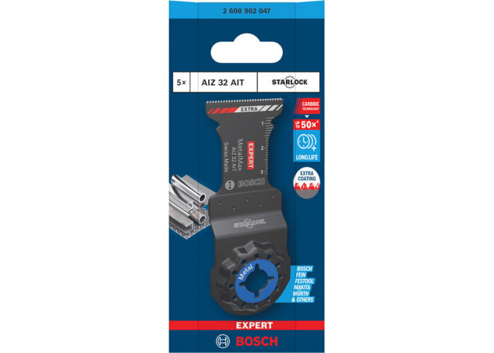 - Фірмова технологія Bosch Carbide Technology поєднує в собі високоякісні твердосплавні зубці з додатковим захисним покриттям для неперевершеної міцності, тому полотно служить до 50 разів довше стандартного біметалевого полотна AIZ 20 AB.