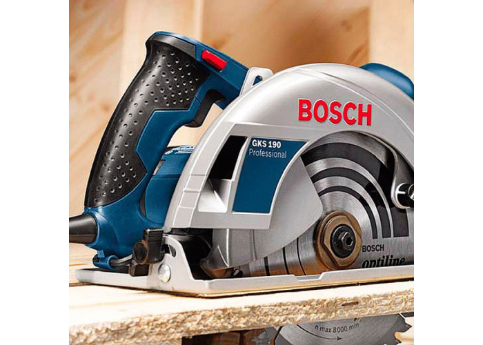 Циркулярна пила Bosch GKS 190 потужністю 1400 Вт з пиляльним диском діаметром 190 мм, що робить 5500 об/хв. Виконує чистий поперечний та поздовжній рез деревини різних за твердістю порід з максимальною глибиною пропила 70 мм, під кутом 45 градусів — 50 мм. Опорна плита 302х140 мм. Блокування шпинделя для безпечної зміни дисків. Турбовентилятор та турбосдув. Інструмент поставляється у картонній упаковці з паралельним упором, адаптером для пиловідведення, диском 190 мм та шестигранним торцевим ключем SW 5.