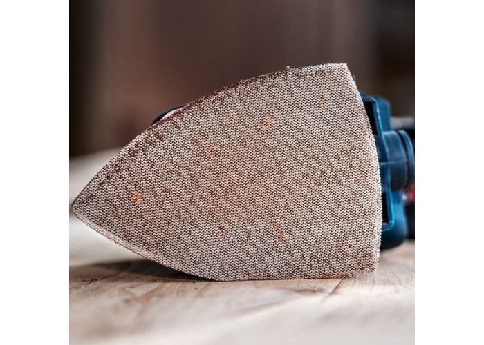 - Розроблений із застосуванням інноваційної технології Bosch Particle Control, цей абразив забезпечує поліпшене видалення пилу завдяки відкритій сітчастій структурі, що не тільки подовжує термін служби матеріалу, а й значно підвищує комфорт під час роботи.