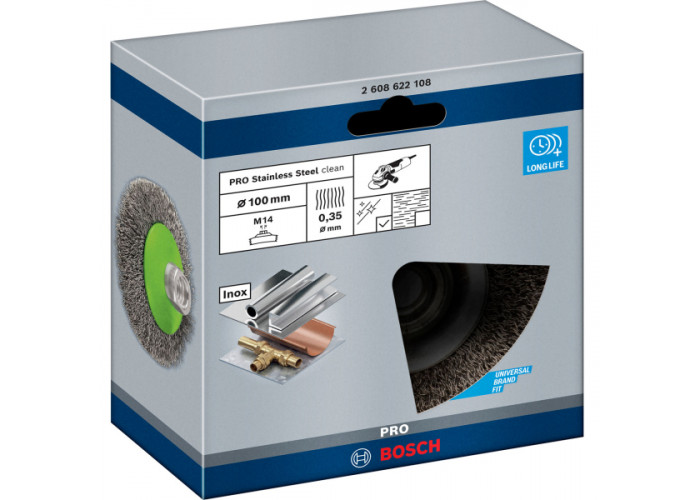 Описание щетки Bosch, 100 мм, 0,35 мм, M14: