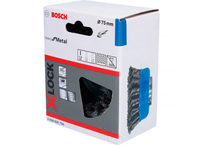 Описание щетки чашечной Bosch X-Lock 75 мм пучки сталь 0,35 мм: