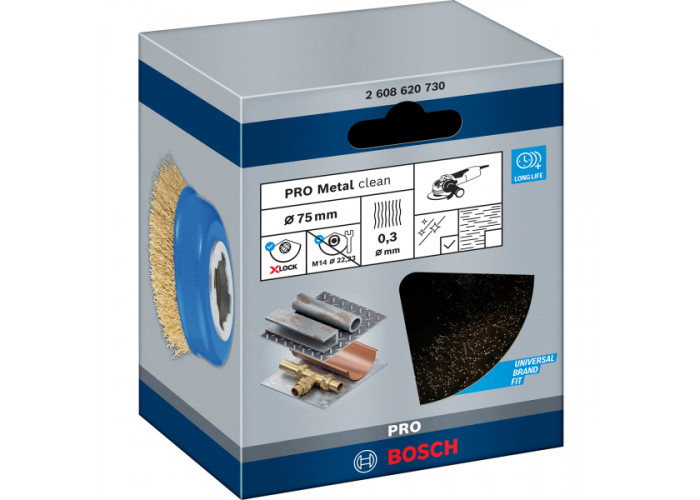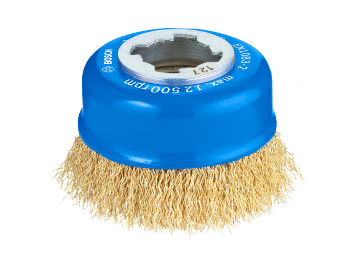 Зачистная чашечная щетка Bosch диаметром 75 мм с витой, покрытой латунью, проволокой толщиной 0,3 мм. Бесключевое крепление X-Lock. Предназначена для легкой очистки средних и больших поверхностей из стали, алюминия и других цветных металлов.