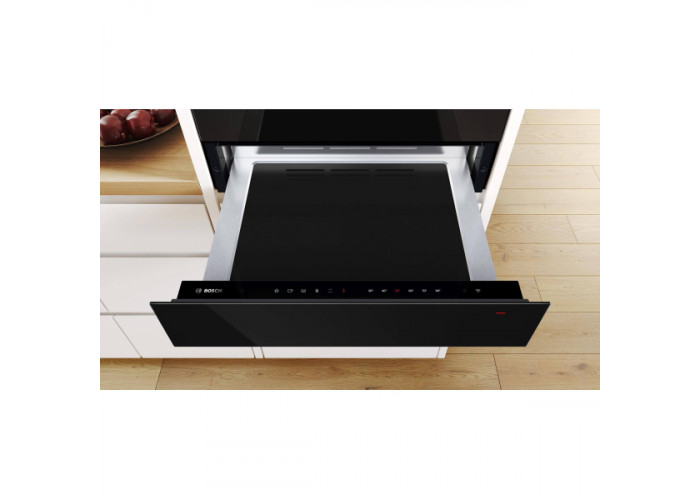 Шафа Bosch BIC7101B1 пропонує чотири різні функції для задоволення кухонних потреб: підігрів посуду, підтримання тепла, низькотемпературне приготування, розморожування та вистоювання тіста. Чотири параметри температури: від 30°C до 80°C. Максимальне навантаження 25 кг: 12 тарілок або 64 чашки еспресо.