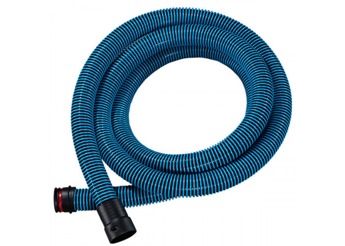 - Шланг виконаний у блакитному кольорі, що підкреслює його приналежність до лінійки аксесуарів Bosch Professional. Відсутність антистатичного покриття компенсується надійною конструкцією і якісними матеріалами, що забезпечують довгий термін служби навіть за інтенсивної експлуатації.
