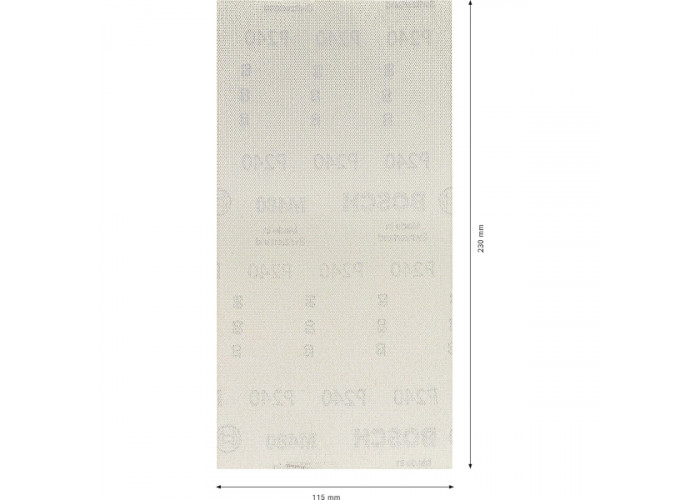 Шліфувальні сітчасті листи Bosch Expert M480 Net шириною 115 мм і довжиною 230 мм — зручний абразивний матеріал для акуратної обробки дерева, лакофарбових покриттів і гіпсокартону. Абразив з оксиду алюмінію забезпечує стабільне шліфування з рівномірним зняттям матеріалу, кріпиться за допомогою липучки або затискачів. Зерно P240.