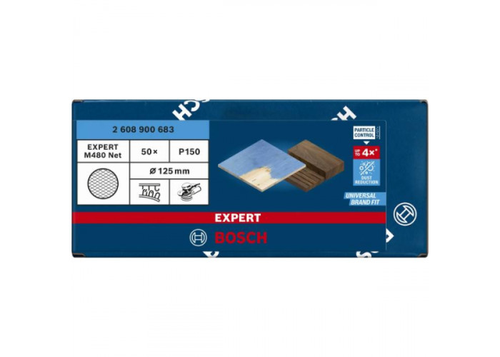 • Шліфувальний круг Bosch Expert M480 для ексцентрикових шліфувальних машин, 125 мм, G150 призначений для високоякісної обробки деревини, шпаклівки та лакофарбових покриттів з мінімальним утворенням пилу.