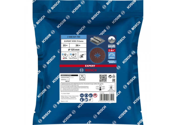 Упаковка з 25 шліфувальних кругів Bosch X-Lock Expert R781 Prisma Ceramic діаметром 125 мм і зернистістю G36