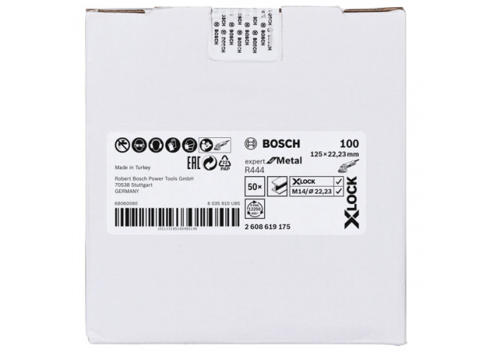 Опис шліфувального круга фібрового Bosch X-Lock R444 Expert for Metal 125 мм, G100:
