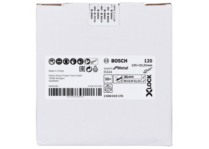 Опис шліфувального круга фібрового Bosch X-Lock R444 Expert for Metal 125 мм, G120: