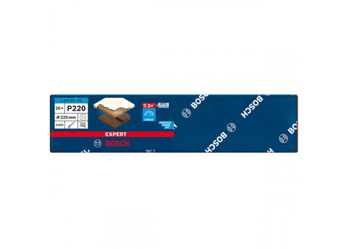 • Шліфувальний лист Bosch Expert C470 з діаметром 225 мм та зернистістю 220 розроблений спеціально для використання на шліфувальних машинах для гіпсокартону. Він має хорошу швидкість знімання матеріалу при обробці різних поверхонь, таких як дерево, фарба, лак, штукатурка і шпаклівка. Великий розмір шліфувального листа дозволяє ефективно працювати з великими площами.