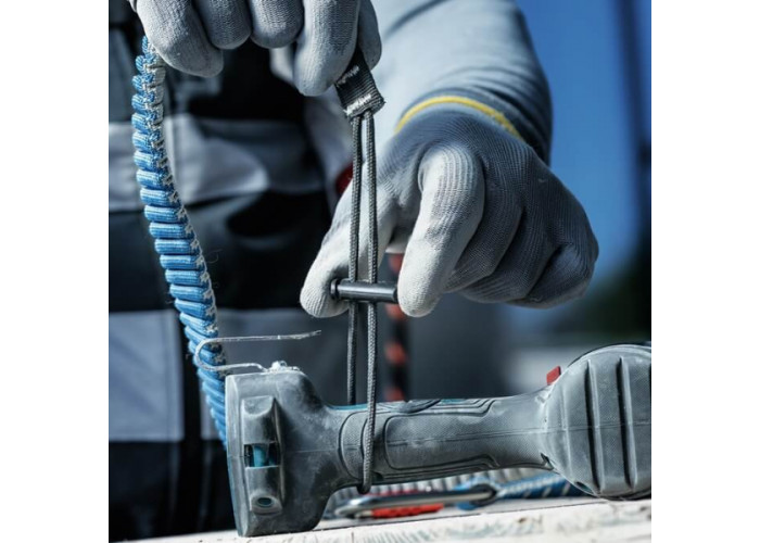 - Конструкция шнура оснащена амортизирующим механизмом, который эффективно замедляет падение инструмента и снижает нагрузку на точки крепления. Это позволяет минимизировать риск повреждений и сохранить целостность оборудования.