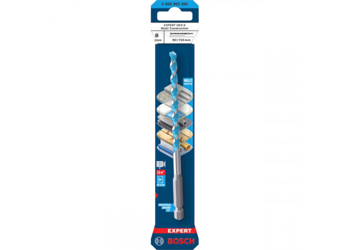 Свердло спіральне Bosch Expert HEX-9 Multi Construction, 8x90x150 мм