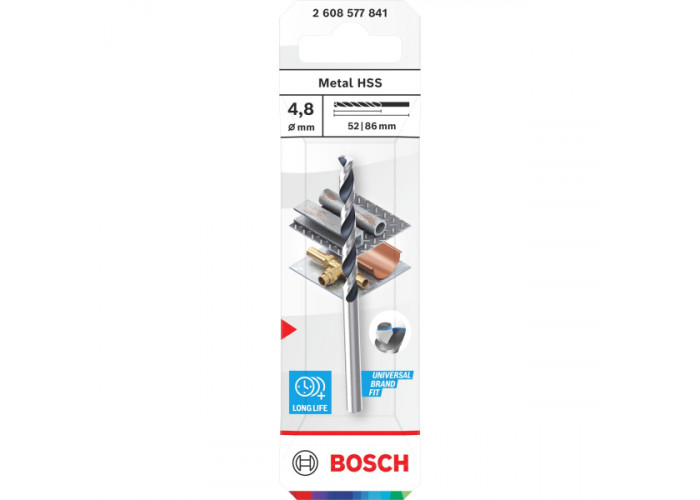 • Спіральне свердло Bosch Metal HSS діаметром 4.8 мм призначене для точного свердління металевих заготовок при виконанні тонких і акуратних робіт.
