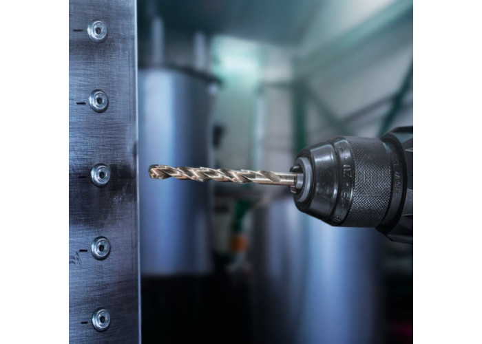 • Основа свердла виконана зі швидкорізальної сталі з додаванням кобальту HSS-Co, що значно підвищує стійкість ріжучої кромки до перегріву та зносу. Завдяки цьому свердло зберігає гостроту навіть під час роботи з важкооброблюваними матеріалами, такими як нержавіюча та легована сталь. Спіральна геометрія забезпечує плавний хід, знижує навантаження на інструмент і сприяє ефективному відведенню стружки із зони різу.