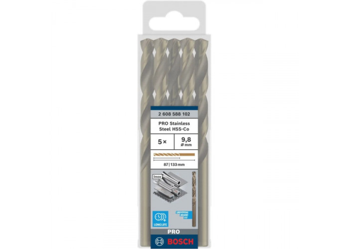 Свердло спіральне Bosch PRO Stainless Steel HSS-Co, 9.8x87x133 мм, 5 шт