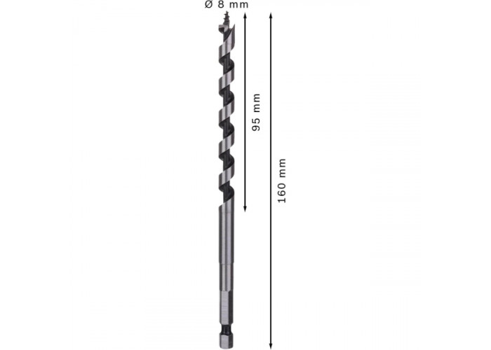 Професійне гвинтове свердло по дереву діаметром 8 мм із загальною довжиною 160 мм. Шестигранний хвостовик