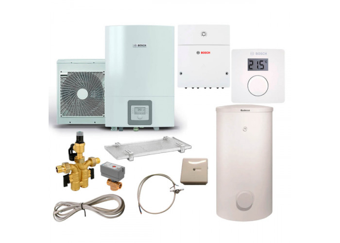 Комплект Тепловой насос Bosch Compress 3000 AWES 8 (8738203007); Термостат CR10 (7738111012); Модуль ProControl Gateway (8718588688); Конденсатосборник (8738204655); Электрокабель (7748000318); Бак-водонагреватель SH 290 RS-B (8732925019); 3-ходовой клапан AZV643 (0001664300); Группа безопасности SG160S