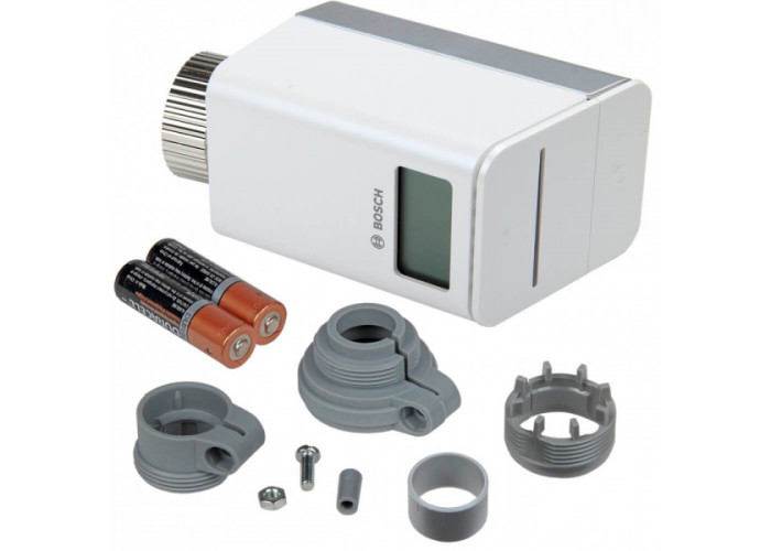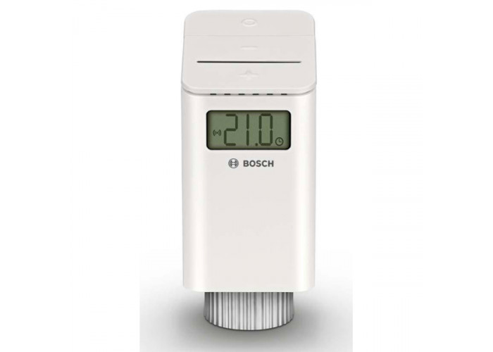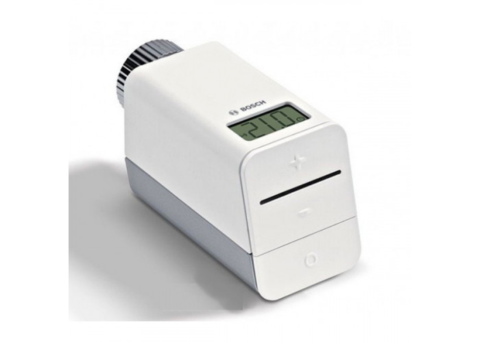 - Термостат радиатора Bosch Smart Radiator Thermostat с беспроводным подключением к регулятору EasyControl для регулировки температуры в отдельно взятом помещении.
