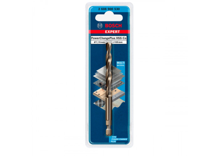 Центруюче свердло Bosch Expert Power Change Plus HSS-Co діаметром 7.15 мм, загальною довжиною 105 мм.
