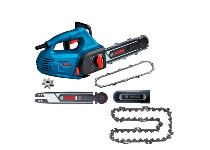 Пила Bosch Professional GAC 250 призначена для різання газобетону. Потужність – 1200 Вт. Довжина пильної шини – 33.5 см. Швидкість ланцюга на холостому ходу – 12 м/с. Тип пиляльного ланцюга – 3/8"–50. Товщина ланки – 1.3 (0.050"). Кількість ланок – 44. Натяг ланцюга без інструменту (SDS). Доставляється з напрямною (335х58х5 мм, 1.5 мм), пиляльним ланцюгом (3/8" - 44-50", 11 зубів TCT), зірочкою 3/8", адаптером для видалення пилу 35 мм, захисним покриттям і додатковим ланцюгом 30,5 см.