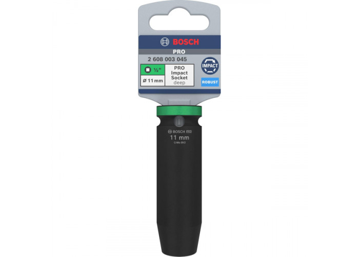 • Ударна торцева головка Bosch Pro Impact Socket Deep призначена для надійної та безпечної роботи з різним професійним кріпильним елементом: гвинтами, болтами та гайками в умовах складних промислових навантажень.
