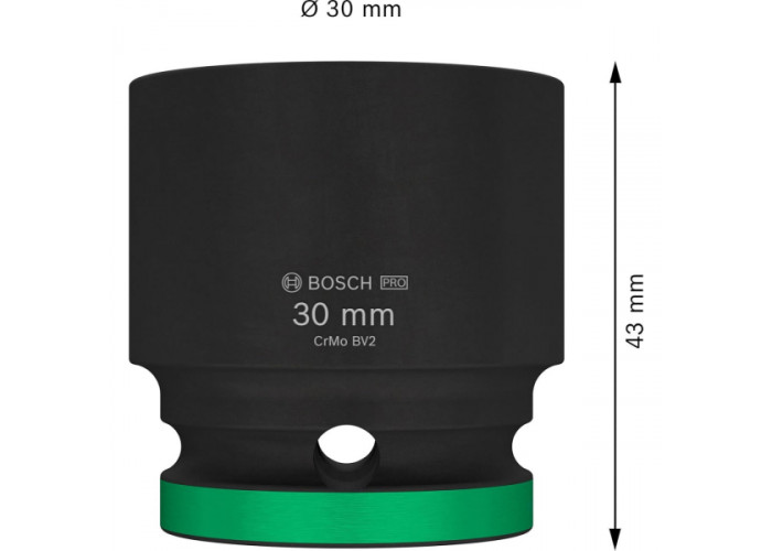 - Ударна торцева головка Bosch Pro Impact Socket Standard призначена для надійної та безпечної роботи з різним професійним кріпильним елементом: гвинтами, болтами та гайками в умовах складних промислових навантажень.