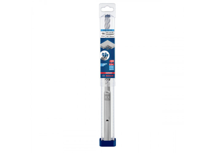 Ударный бур Bosch Expert SDS-Max-8X диаметром 16 мм имеет рабочую длину 200 мм (при общей – 340 мм). Подходит к перфораторам с патроном SDS-Max.