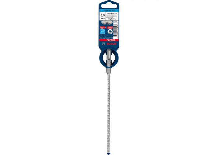 Ударный бур Bosch Expert SDS-plus-7X диаметром 5.5 мм имеет рабочую длину 150 мм (при общей – 215 мм). Подходит к перфораторам с патроном SDS-Plus.