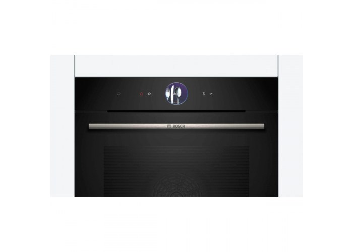Вбудована електрична духова шафа Bosch HBG7361B1 потужністю підключення 3,6 кВт шириною 60 см, із сучасним оздобленням із чорного скла додасть елегантності будь-якій кухні. 14 режимів нагріву, у тому числі: 4D Hot Air, Air Fry, піца, верхнє/нижнє нагрівання, різні функції гриля (велика площа, мала площа, циркуляція повітря). Функція Oven Assistan. Духовку можна налаштувати на температуру в діапазоні 30-300°С. Об'єм камери - 71 л. Світлодіодне підсвічування. Цифрове кільце керування та сенсорний TFT-дисплей.