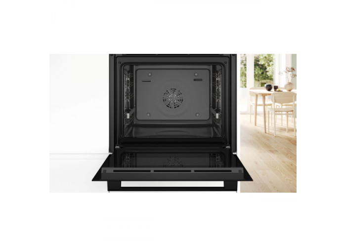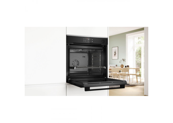 - Bosch HRG232EB3 — вбудована духовка серії 4 з додатковою функцією приготування на пару, яка покращує результати приготування.