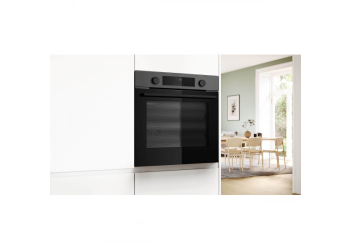 • Духова шафа Bosch HUA736EG0T поєднує пару та конвекцію, гарантуючи збереження вологи в продуктах, що дозволяє отримувати ніжне м'ясо, ніжну рибу та хрумкий хліб.