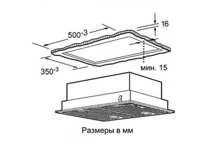 - Ширина витяжки 53 см.