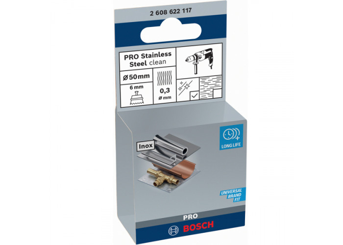 - Щітка Bosch PRO Stainless Steel Clean 50x0.3 мм — професійний підхід до роботи з нержавіючою сталлю.