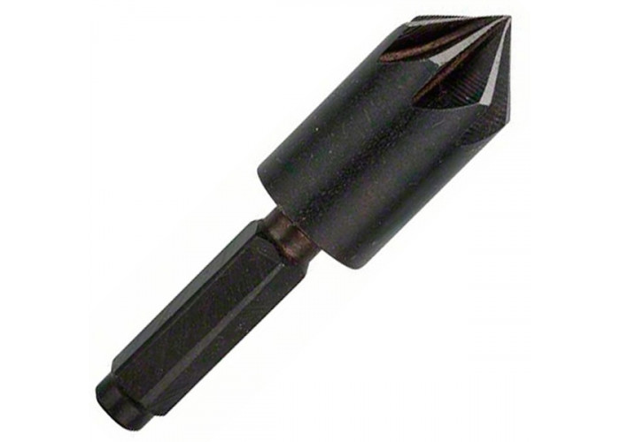 Зенкер Bosch диаметром 13 мм, общей длиной 50 мм, с 7 резцами. Зенкерование 90 градусов. Хвостовик диаметром ¼ дюйма.