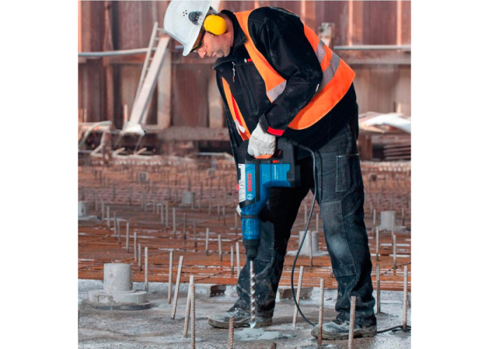 1500-ватний перфоратор Bosch GBH 8-45 D Professional з патроном SDS-Max відрізняється високою продуктивністю при мінімальному рівні вібрації. Двухрежимний (свердління з ударом і довбання) інструмент робить 1380-2720 ударів в хвилину енергією 12,5 Дж. 0-305 об/хв. Електронний стабілізатор. Плавний пуск і захист від ненавмисного включення. Запобіжна муфта. З проломним буром SDS-max-9 45х850х1000 мм в комплекті.