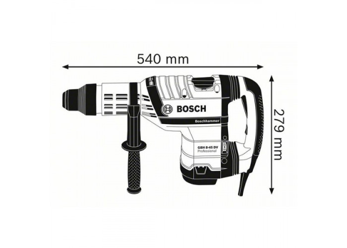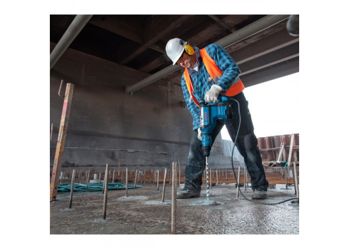 1500-ватний перфоратор Bosch GBH 8-45 DV Professional з патроном SDS-Max відрізняється високою продуктивністю при мінімальному рівні вібрації. Двухрежимний (свердління з ударом і довбання) інструмент робить 1380-2700 ударів за хвилину енергією 12,5 Дж. 0-305 об/хв. Можливість змінювати положення насадки. Режим Turbo Power. Електронний стабілізатор. Плавний пуск і захист від ненавмисного включення. Запобіжна муфта. Трирівнева система зниження вібрації. З проломним буром SDS-max-9 45х850х1000 мм в комплекті.