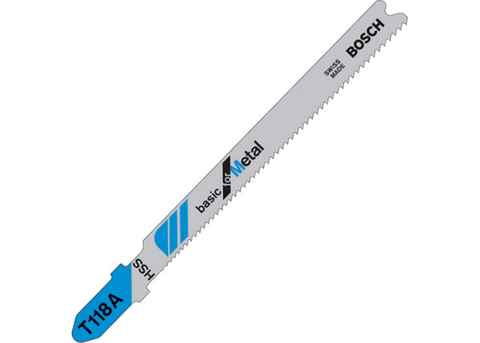 - Пилка Basic for Metal T 118 A изготовлена из высоколегированной быстрорежущей стали HSS, которую используют в производстве оснастки для металлообработки. Этому твердому полотну свойственны высокая нагрузочная способность и долгосрочная работоспособность.