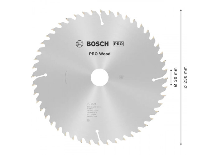 Пильный диск по дереву Бош PRO Wood 230 мм /48 зубов подходит для ручных дисковых пил, также специально приспособлен для аккумуляторных циркулярных пил. Диаметр диска 230 мм, посадочного отверстия — 30 мм. Этот диск легко и сверхтонко выполнит быстрый продольный и поперечный пропилы во всех типах древесины: мягком, твердом дереве, необлицованной ДСП, древесностружечных плитах, волокните и т.д.