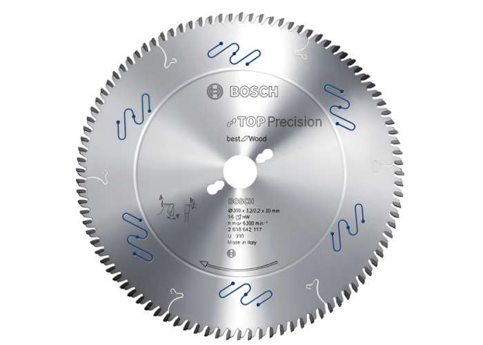 - Bosch Top Precision Best for Wood 450х30х4.4 мм, 66Т - високоякісний інструмент, призначений для чистого і точного різу деревини (тверді та м'які породи, ДСП, фанера, столярні вироби).