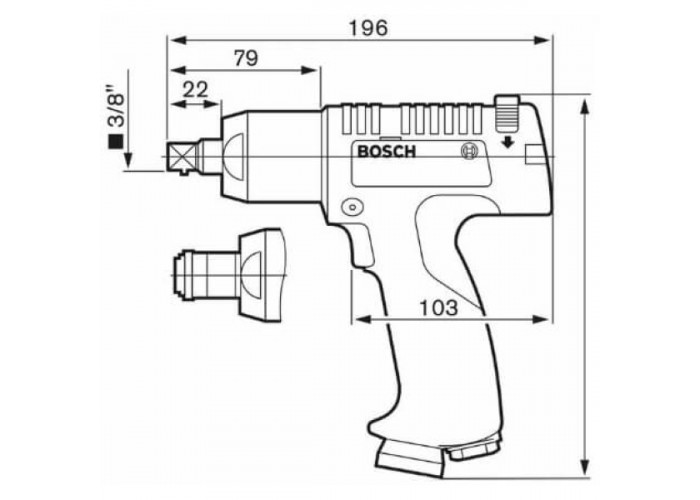 Пневматичний шуруповерт Bosch Professional 1/2" — із професійної лінійки. Потужність його — 400 Вт. Працює із твердими та м’якими матеріалами. Діаметр гвинтів (максимальний) — М 10. Патрон — зовнішній чотиригранник. Робочий тиск — 6.3 атм. Важить насадка для компресора 1.3 кг.
