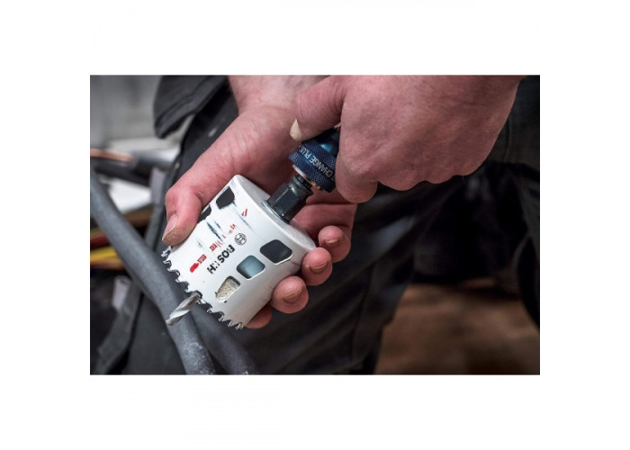 - Используется с биметаллическами коронками, которые устанавливаются без дополнительного инструмента.