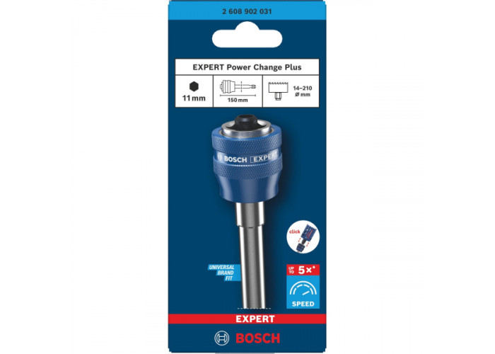 - Удлинитель с адаптером Bosch Expert Power Change Plus длиной 150 мм предназначен для удобной и точной работы с корончатыми пилами в ситуациях, когда стандартной глубины сверления недостаточно. Он используется совместно с системой быстрой замены Power Change Plus и позволяет эффективно выполнять отверстия в труднодоступных местах, а также в толстых стенах и конструкциях без потери стабильности и контроля над инструментом.