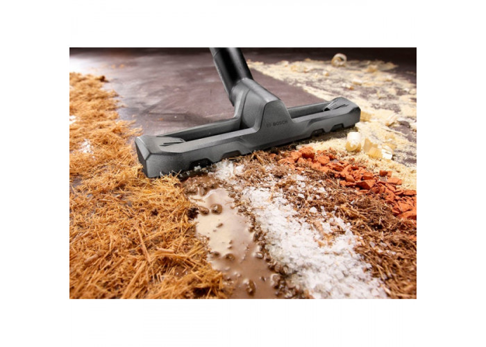 - Технічний пилосмок має можливість підключати електроінструмент Бош. Автоматичне дистанційне включення дозволяє працювати пилососу одночасно з інструментом.