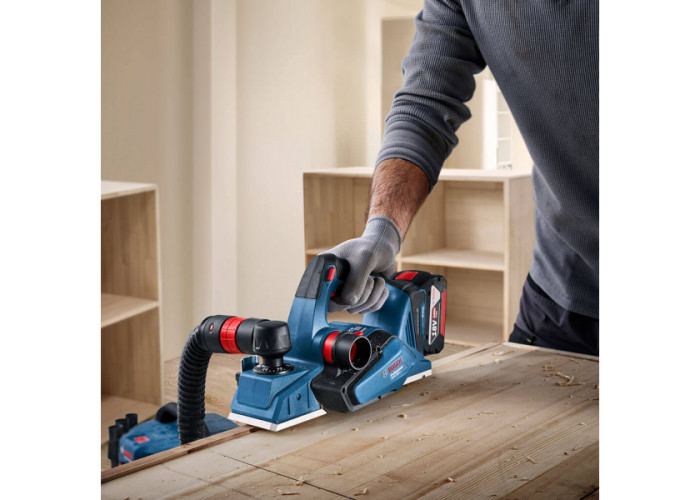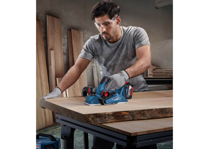 • Рубанок акумуляторний Bosch Professional GHO 185-LI призначений для стругання деревини, як-от балки та дошки, які встановлені на стійкій опорі. Також його можна використовувати для створення скосів на кромках матеріалу і для виконання вибірки чверті.