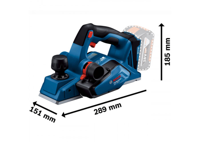 • Рубанок акумуляторний Bosch Professional GHO 185-LI працює на 18-вольтовому літій-іонному акумуляторі, який купується окремо, а також необхідно додатково придбати зарядний пристрій.