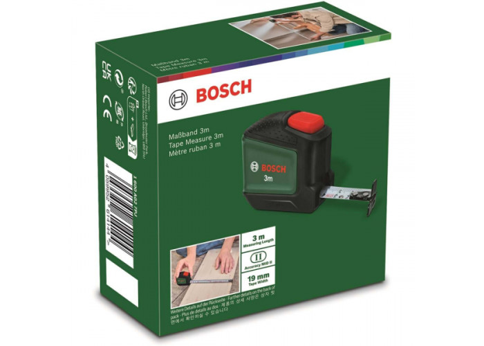 Рулетка Bosch довжиною 3 м забезпечує точні вимірювання та комфорт у використанні. Інтуїтивна функція автоблокування і клас точності II роблять вимірювання простим і надійним. Стрічка шириною 19 мм з міцним нейлоновим покриттям витримує подовження до 1.8 метра без перегинів. Ергономічні м'які зони захоплення, двосторонні гачки, плоский упор і затискач для ременя забезпечують максимальний комфорт і легкість роботи.