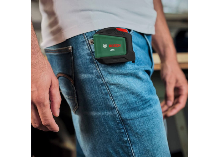 1. Міцна та зручна рулетка побутового класу Bosch довжиною 3 м — це надійний інструмент для точних вимірювань удома та на вулиці.