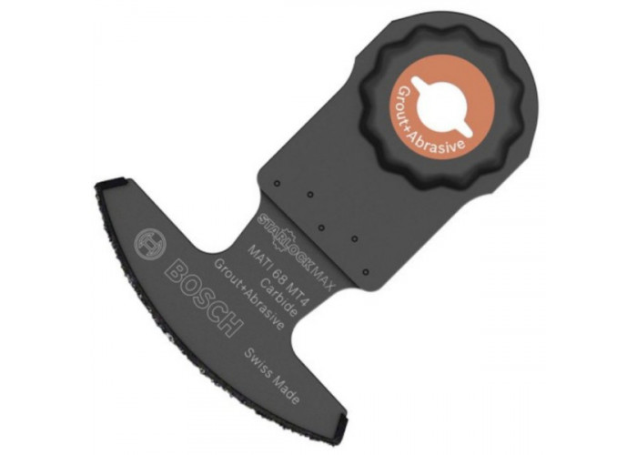 Сегментированный пильный диск Bosch Carbide-RIFF MATI 68 MT4 рабочей шириной 68 мм с карбидным покрытием зерном 40, с глубиной врезания 30 мм подходит для фрезерования пазов в пористом бетоне, выфрезерования швов в керамической плитке. Крепление StarlockMax.