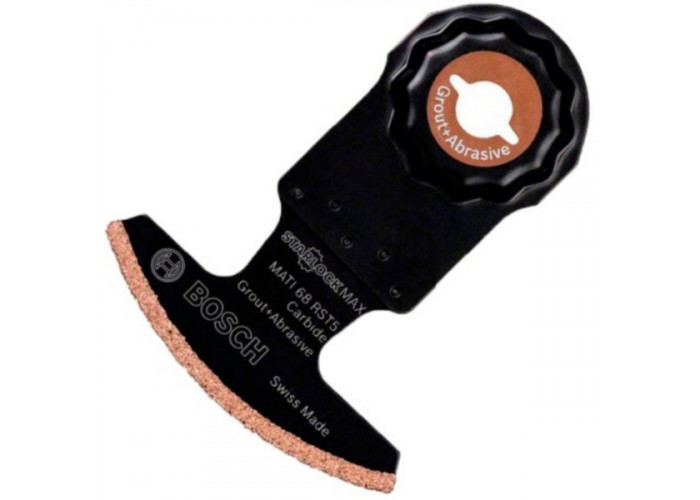 Сегментированным пильным диском Bosch Carbide-RIFF MATI 68 RST5 удобно выфрезеровывать швы между мраморными плитами, в пористом бетоне. Тонкое полотно (меньше 1,5 мм) с рабочей шириной 68 мм и глубиной врезания 10 мм подходит для фрезерования пазов и тонких швов. Крепление StarlockMax.