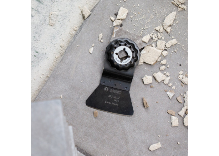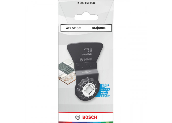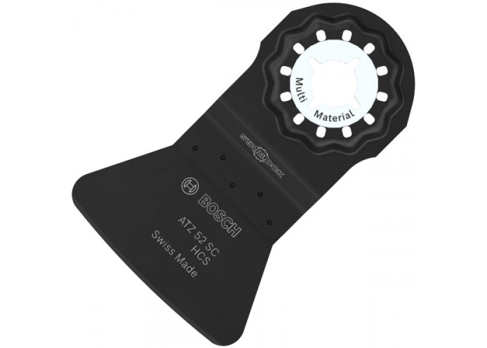 - Жорсткий шабер Bosch ATZ 52 SC Multi Material з робочою шириною 52 мм і глибиною 26 мм призначений для використання з багатофункціональними інструментами, що осцилюють, і розроблений для ефективного видалення міцних і застарілих забруднень з різних поверхонь.